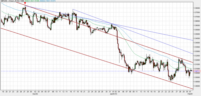 | GBPUSD – 29.01.15. Фунт продолжает торговаться в окрестности верхней границы коррекционного канала краткосрочного тренда 1.4926-1.5194. |