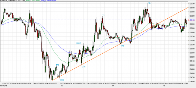 | EURUSD – 12.03.15. Евро откатывает к прорванному уровню среднесрочной поддержки 1.0630. |